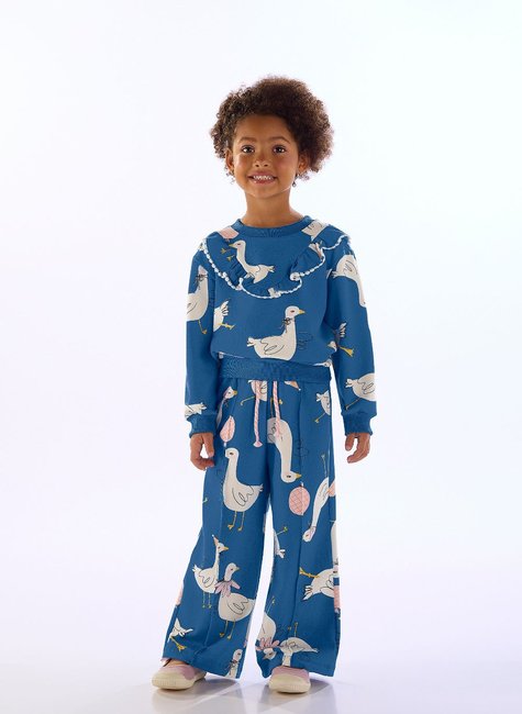 Conjunto infantil para menina composto por blusão e calça, ideal para oferecer conforto e estilo nos dias mais frescos. Produzido em tecido super cotton felpado (algodão e elastano), proporciona toque suave e ajuda a manter o calor corporal sem limitar os movimentos. O blusão possui modelagem boxy, com acabamentos em ribana na gola, nos punhos e na barra, garantindo bom ajuste e durabilidade. Conta ainda com recorte com babado, aplique de renda com pequenos pompons e patch termocolante, que valorizam o visual lúdico da peça. A calça apresenta elástico na cintura para melhor ajuste, cadarço decorativo com ponteiras de franjas e nervura frontal. As peças possuem estampa temática sobre fundo azul, trazendo um ar moderno e divertido ao guarda-roupa das meninas.