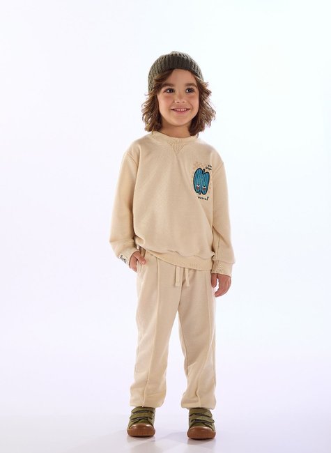 Conjunto Infantil Masculino com Blusão e Calça Humor (Bege)