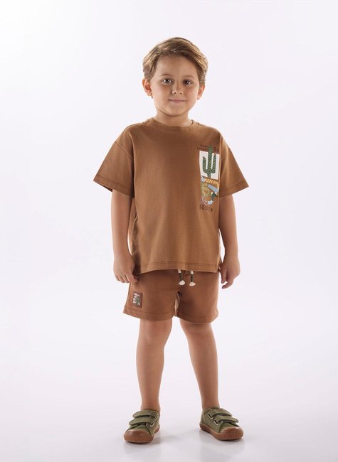 Conjunto Infantil Masculino Oásis com Camiseta e Short (Marrom)