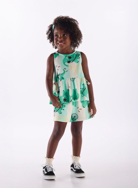 Blusa: 80% Algodão e 20% Viscose | Short: 80% Algodão, 18% Viscose e 2% Elastano