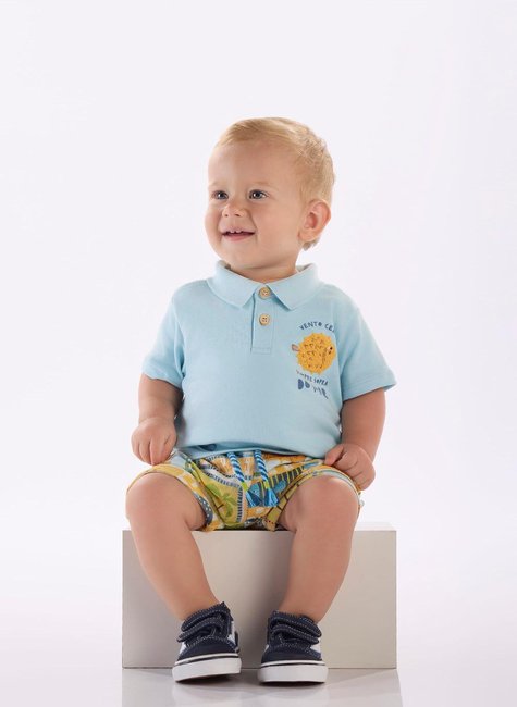 Conjunto Solar para Bebê Menino com Polo e Short (Azul)
