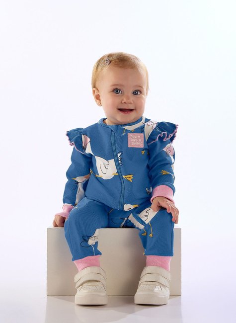 Macacão: Cotton Felpado (Algodão e Elastano) / Punhos e Babados: Ribana