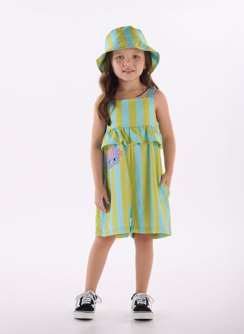 Macaquinho Folia Infantil Feminino com Linho (Verde)