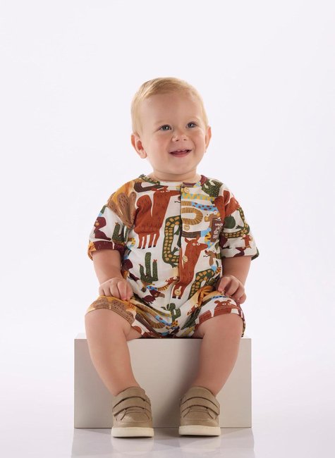 Macaquinho Oásis para Bebê Menino em Algodão (Off White)