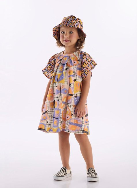 Vestido Borboleta Infantil em Algodão e Viscose (Off White)