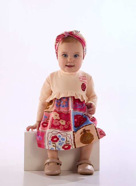 Vestido e Faixa de Cabelo Dona Joana para Bebê (Rosa Claro)
