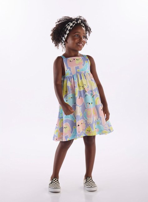 Vestido Infantil Folia em Algodão e Viscose (Azul)
